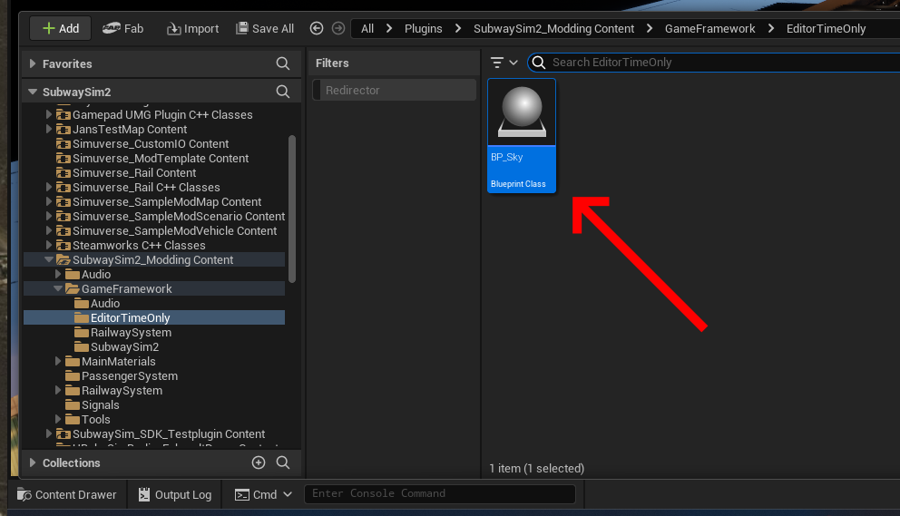To work comfortably inside the editor, SubwaySim 2 provides a dedicated editor-only lighting setup. Instead of manually placing individual lighting actors, we use a predefined Blueprint called BP_Sky.