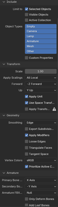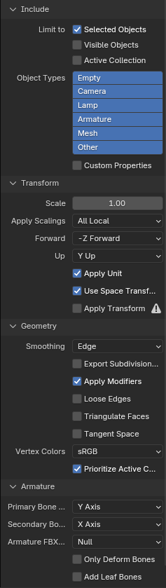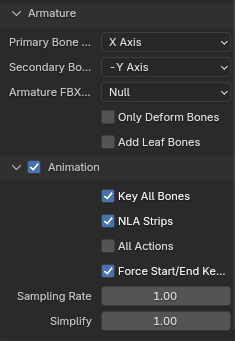 Depending on what is being exported, different FBX export settings are required.