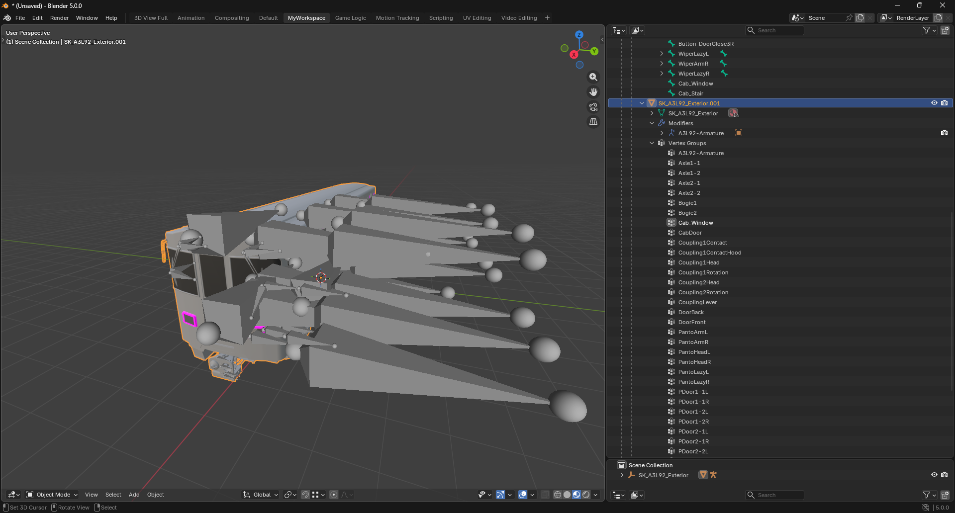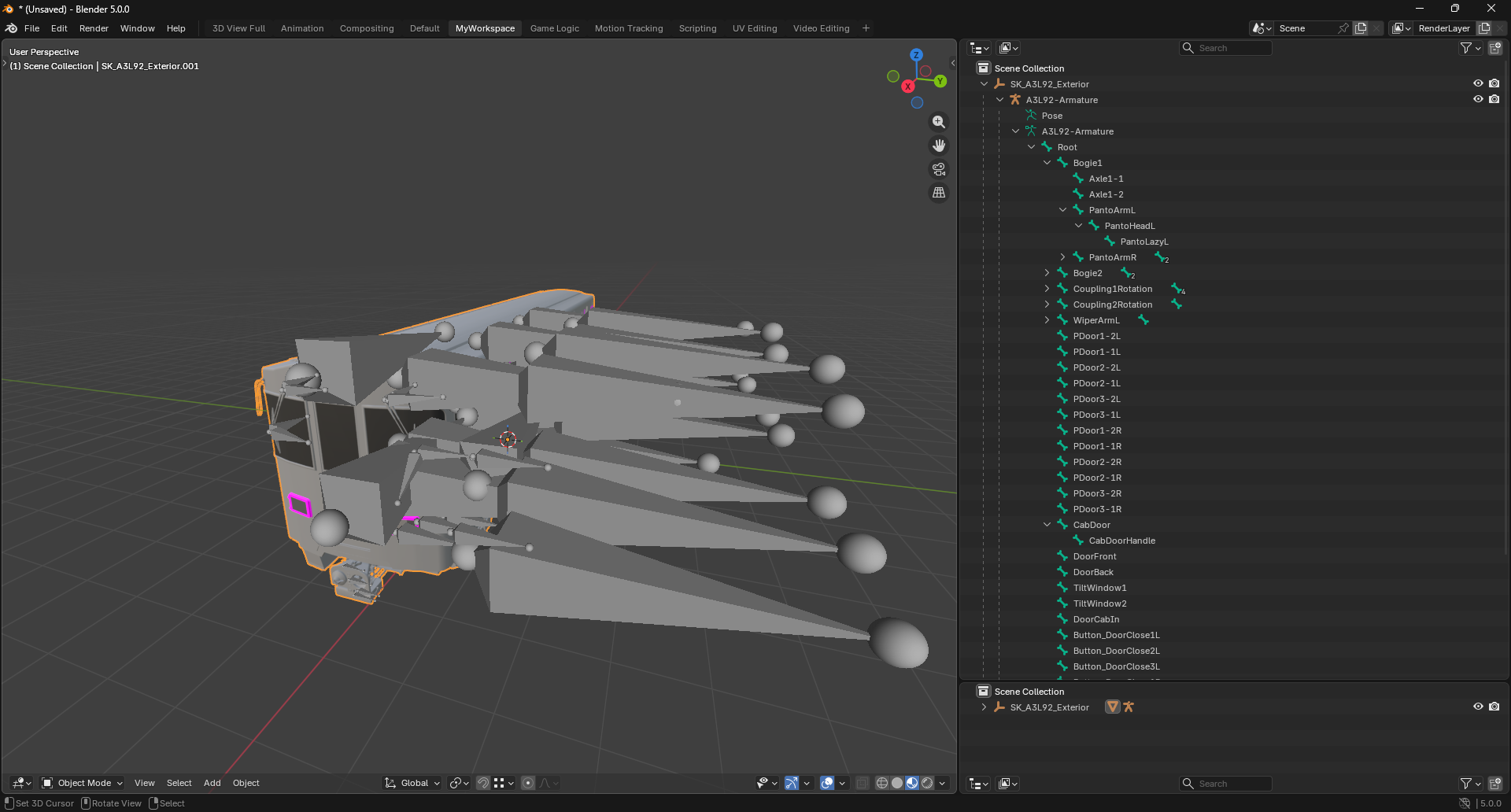 To achieve this reliably and cleanly, SubwaySim 2 vehicles are rigged using an Armature.
